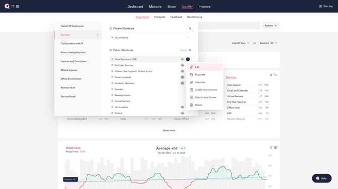 - Appear in shared Shortcut lists on the Dashboard and Experience page